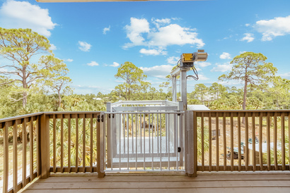 One of the unique features of this home is the mezzanine deck below. This versatile space is perfect for entertaining guests, with plenty of room for playing pool, grilling or an outdoor bar area.